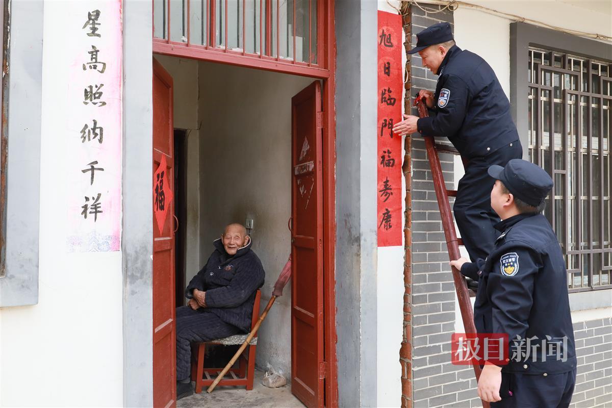待村民们都领到对联后,朱万春又拎起了装有春联和糨糊的袋子,来到行动不便的老人家中。每到一家,朱万春都细心地为老人挑选合适的对联,然后小心翼翼地贴在他们的门上,用满载新春祝福的春联和饱含真情的福字,传递对老人们新年的美好祝愿。