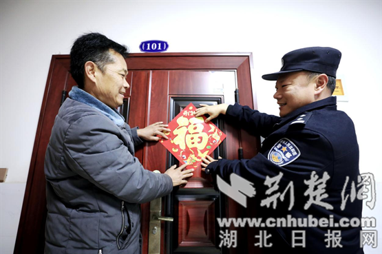 1月24日上午,杨帆带领民辅警前往荆门市漳河镇养老院,看望慰问养老院的老人们,专门送上春联和福字,与养老院老人和工作人员一起张贴。随后,他们详细了解老人们的身体健康状况,对养老院消防、电器等安全设施进行全面的检查,给老人们讲解防诈骗、防火防盗知识,帮助提升老人们自我保护意识,确保老人安全舒适度新春。
