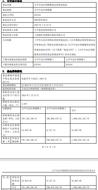 中国经济网北京1月27日讯 近日,太平基金管理有限公司发布太平中证红利指数型证券投资基金基金合同生效公告。