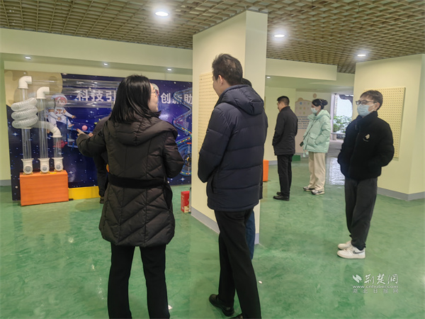 一行人还参观了2024年底竣工的共建项目——家门口的科技馆。据悉,该科技馆是欧景苑社区在湖北省知识产权局的资助下,为青少年精心打造的一个活动空间。科技馆内设有科普展区、互动体验区和儿童活动区,旨在通过寓教于乐的方式,丰富社区青少年的课余生活,提升他们的科学素养和创新能力。