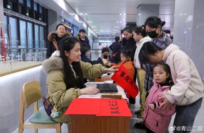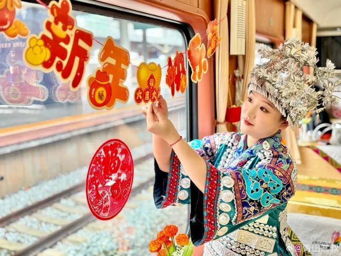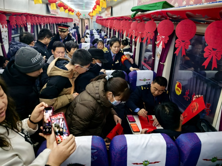 在从陇西开往青林的7504/7503次列车上开展的“新春送福”活动,现场书写福字与春联,把诚挚美好的新春祝福融入其中。