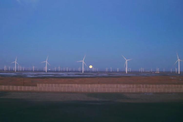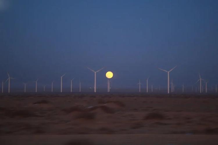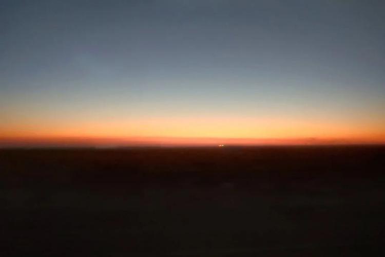 在前往家乡的列车上经过哈密时,我坐在窗边正吃着泡面,抬头便看到这绝美月色,我用相机将它定格,而在车厢的另一边是落日,两种景色交汇在此,也应了窗贴上这句“回家的路,就是最美的风景”。