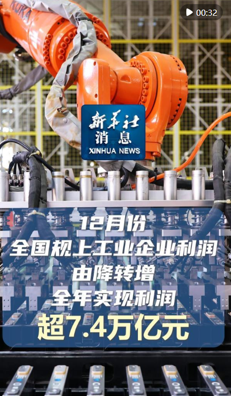 新华社消息|12月份全国规上工业企业利润由降转增 全年实现利润超7.4万亿元