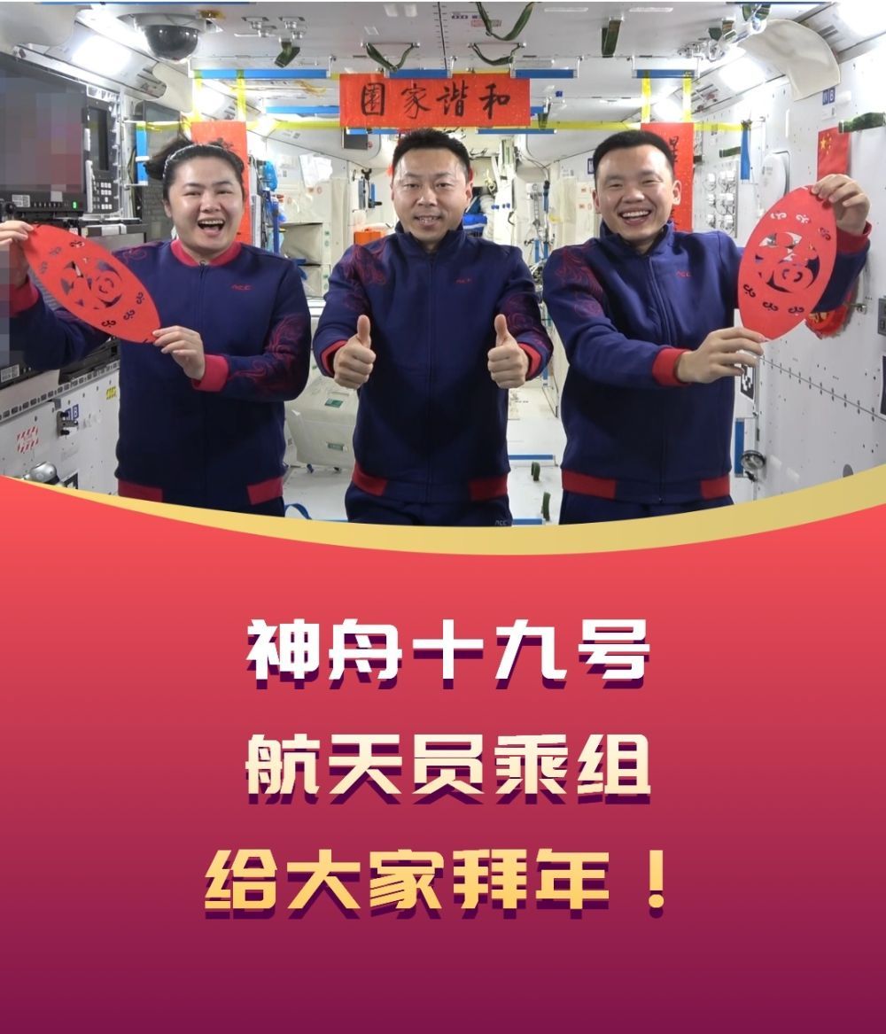 神舟十九号航天员乘组从中国空间站为大家送来蛇年祝福!祝全国人民新岁安泰!巳巳如意!祝福伟大祖国时和岁丰!繁荣昌盛!
