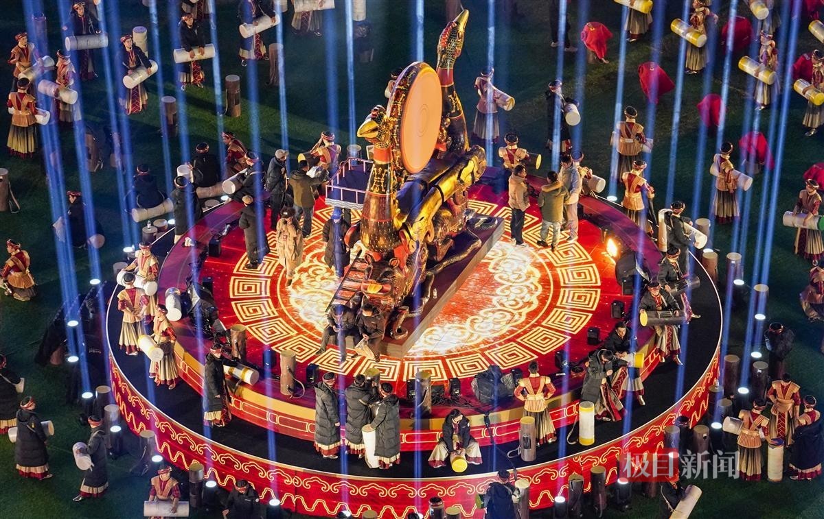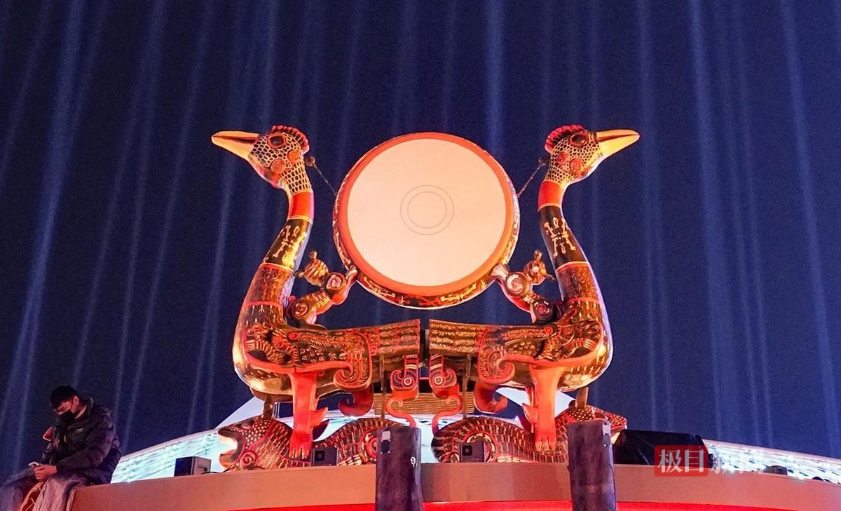 接受采访时,春晚武汉分会场舞蹈总监蔡微蔓提到,在“最有科技感最为现代”的光谷广场选择放置6米高的巨型虎座鸟架鼓,就是为了传递荆楚大地的非遗文化,“在这里,我们随着时代的律动击鼓而鸣,我们在延续着我们这块土地上留下的灿烂文化。”