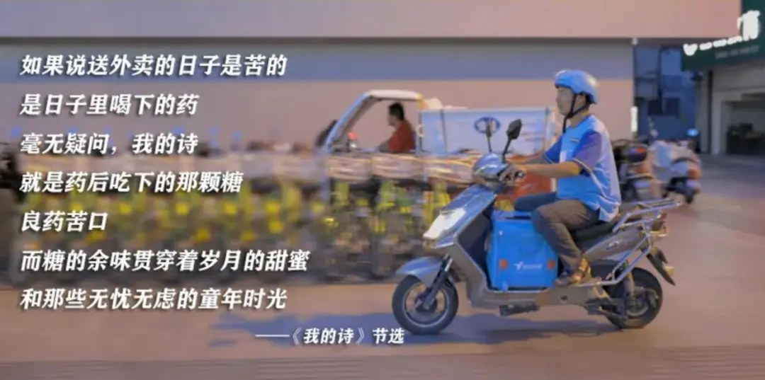“如果说送外卖的生活是苦的,是日子里喝下的药,我的诗,就是药后吃下的那颗糖。”