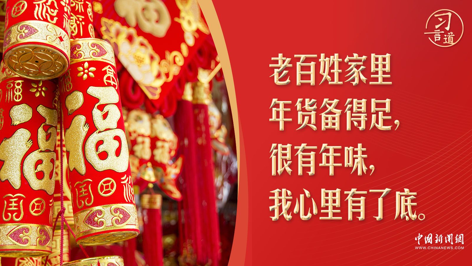 今年春节前夕,习近平总书记在辽宁看望慰问基层干部群众时,察看多家店铺,频频同店主和顾客交流,详细了解节日期间市场供应情况,“现在物质丰裕,过年团圆更要让大家吃得好、吃得健康。”