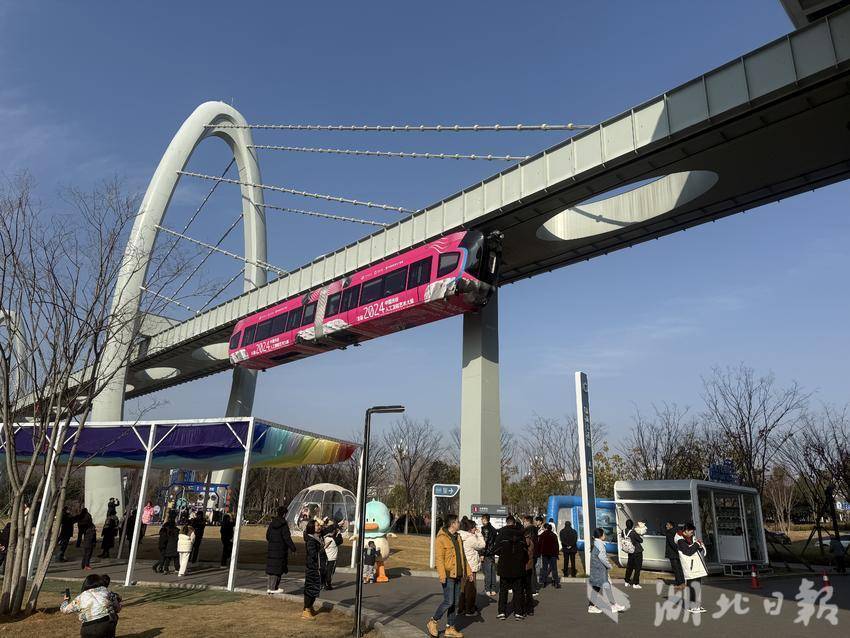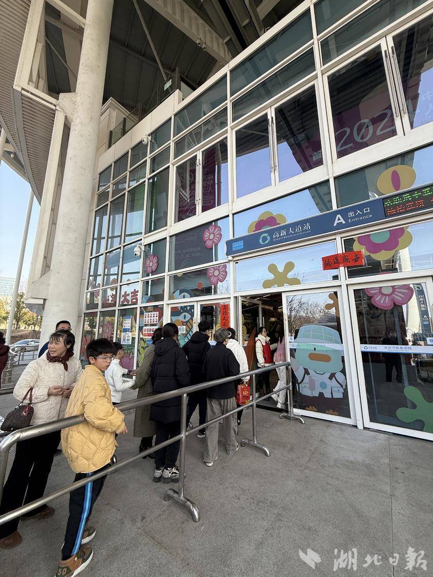 大年初一下午,记者专程来到光谷空轨高新大道站,感受市民游客打卡赛博武汉的似火热情。