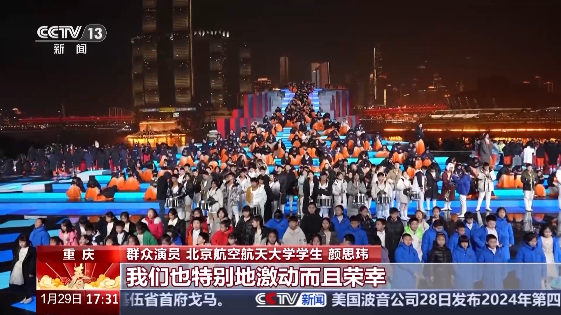 群众演员 北京航空航天大学学生 颜思玮:能够来到重庆分会场参加春晚节目的录制,这个机会对于我们行进管乐团来说非常难得,我们也特别激动、荣幸。
