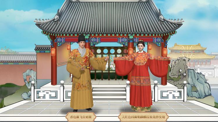 饰有标准的柿蒂形云肩、袖襕和膝襕