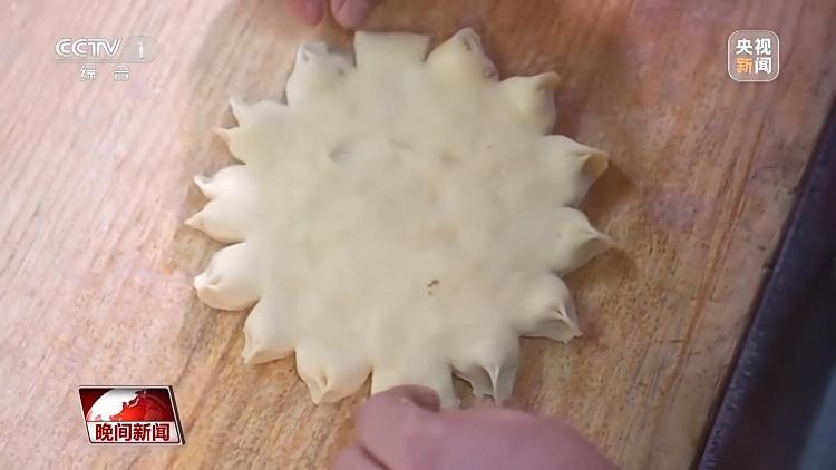在和好的面团发酵后,吾拉音·艾买提开始用擀面杖开面、一边旋转面团,一边熟练地捏出馕边。