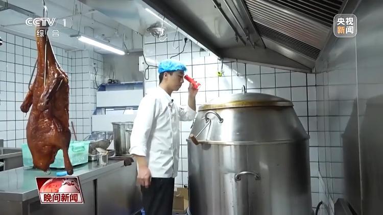 张磊说,做烧鸭前期加工腌制工序比较繁杂,非常考验自己的耐性。烤制的过程中,要时不时地打开烤炉上的小孔,观察烤制的情况,根据经验对烤炉的温度进行实时调整。