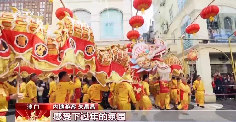 内地游客 朱晶晶:今年专门带小朋友来这边过年,感受下过年的氛围,因为这边的舞龙舞狮也非常传统,非常有特色。