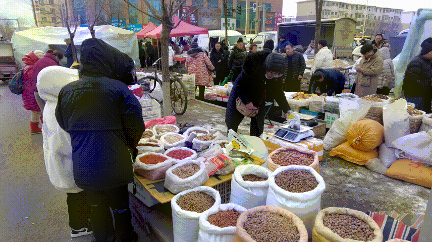 在市场一角,品类丰富的山货摊位格外引人注目。东北广袤的山林,仿若一座天然宝库,毫不吝啬地为人们献上了大自然丰厚的馈赠。一颗颗饱满的松子,散发着淡淡的松脂香,那是山林独有的气息;榛子个大皮薄,轻轻一咬,“咔嚓”一声,满是香脆;还有那黑乎乎的木耳,金黄的蘑菇,都是餐桌上的美味佳肴。