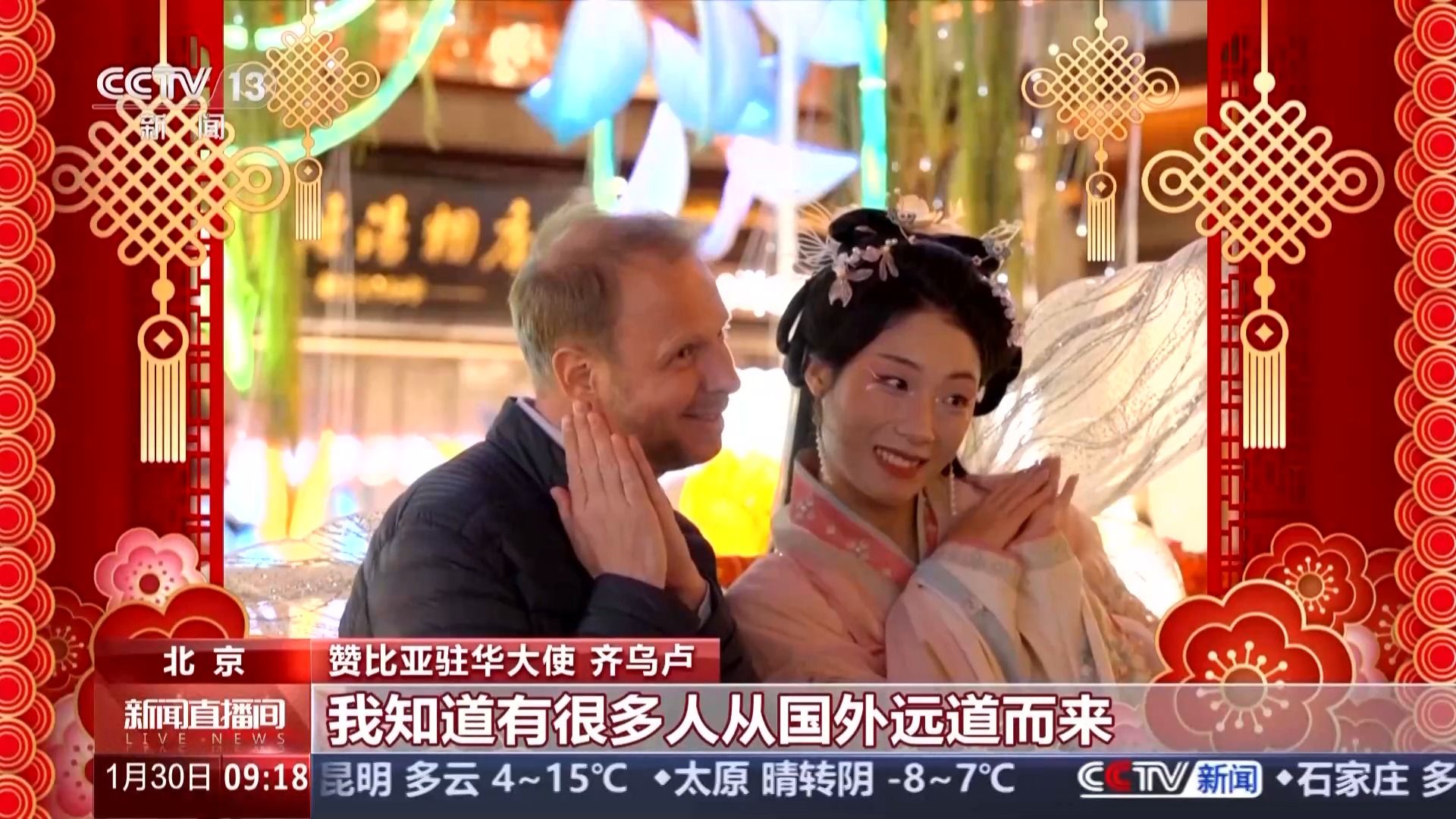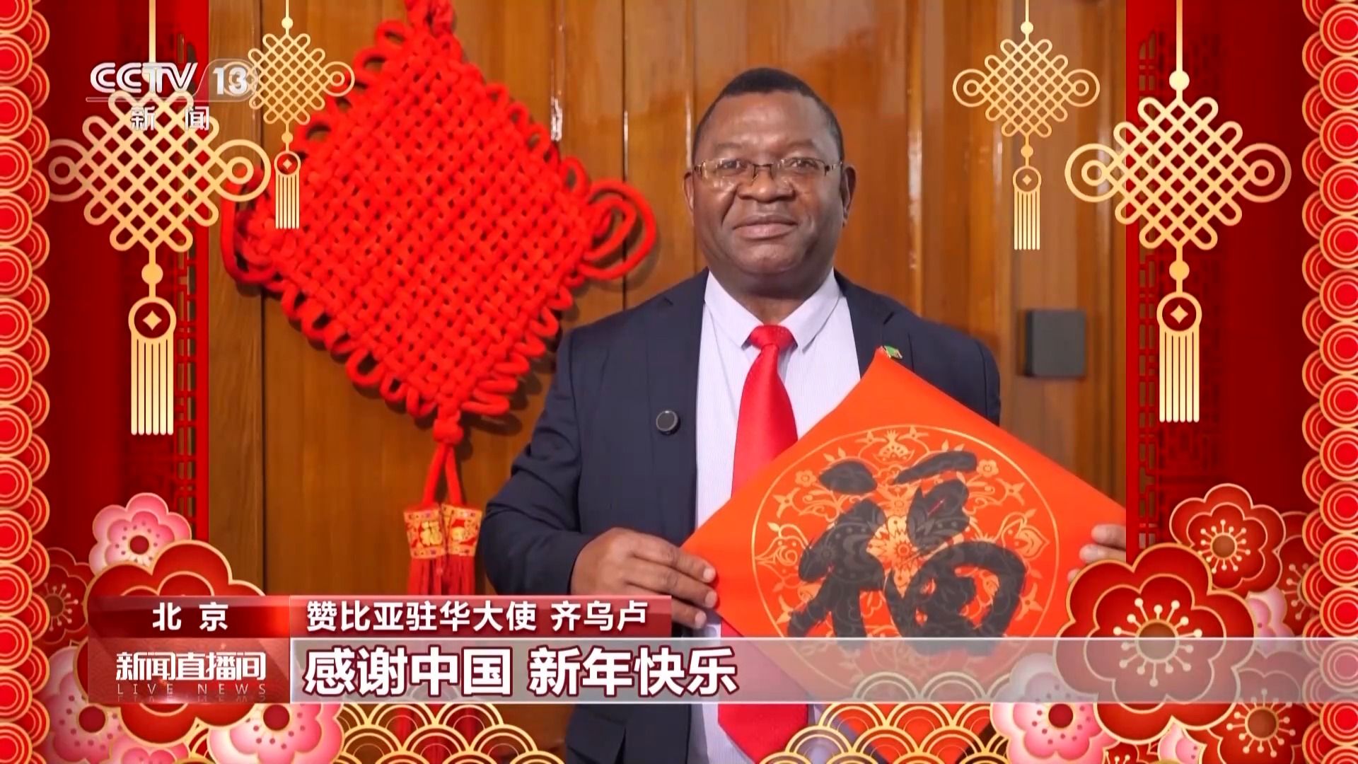赞比亚是南部非洲第一个与中国建交的国家,两国传统友谊深厚。去年9月,赞比亚总统希奇莱马访华并出席中非合作论坛北京峰会,双边友好合作关系不断发展。赞比亚驻华大使齐乌卢任职一年多,到访过江西、福建、陕西等地,今年是他第二次在中国过年,他也祝贺中国春节申遗成功。