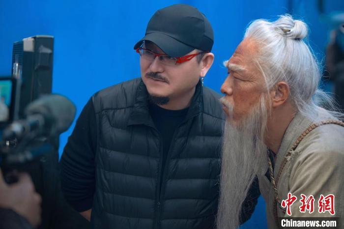 乌尔善(图左)与演员黄渤(饰 姜子牙)在拍摄中。片方供图
