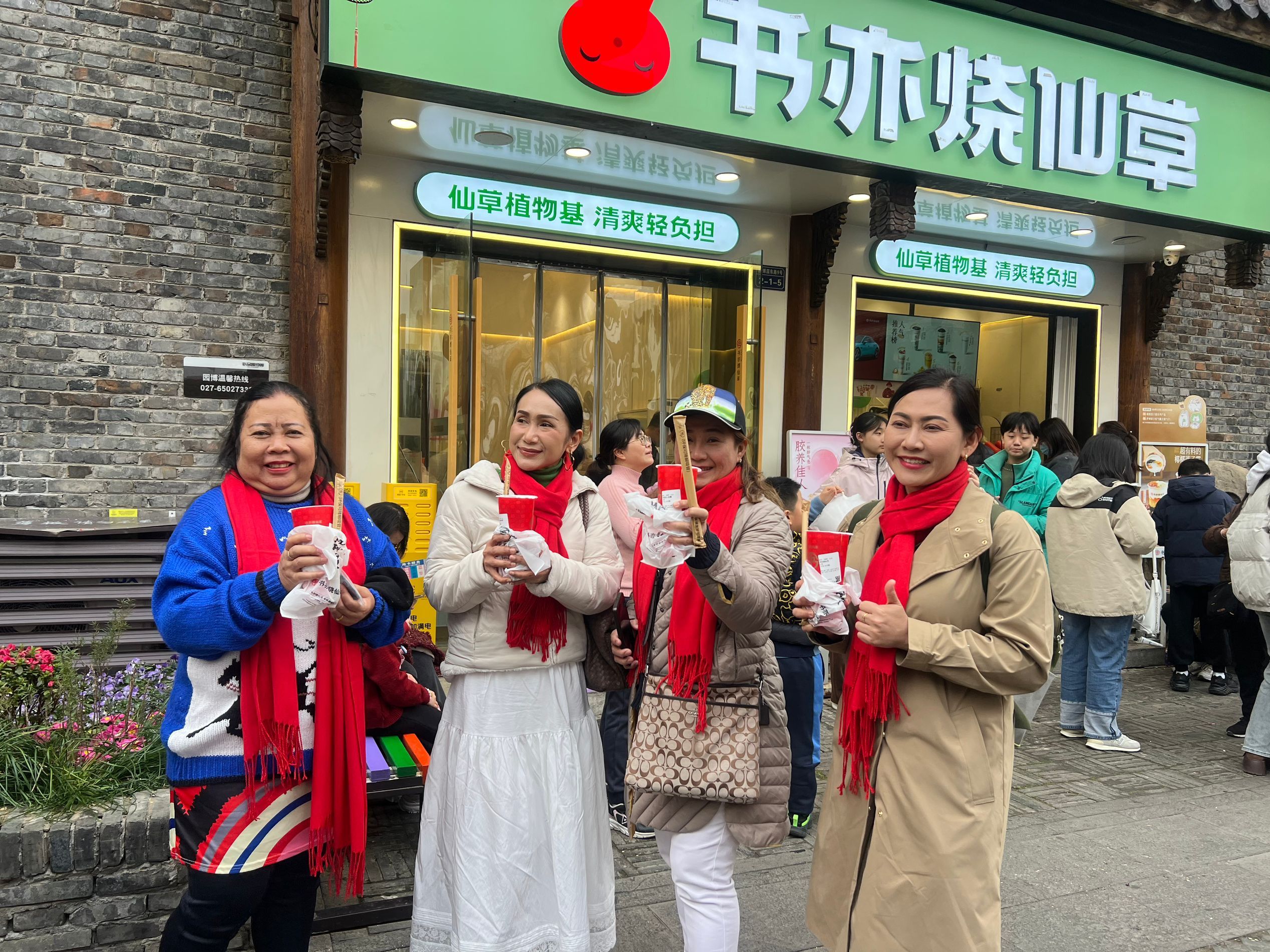 “这些精美的手工艺品,太让人惊喜了。中国的春节太热闹了,不仅有美味的食物,还有这么多精美的文创商品,我都舍不得离开了。”俄罗斯游客苏非拿起一把精美的折扇,对工匠的技艺赞不绝口,“武汉很美,中国人民都很友好,我很喜欢这里!”几名泰国游客迫不及待买来几杯奶茶尝尝鲜,“听说这是中国现在最流行的饮料,味道确实很不错。”