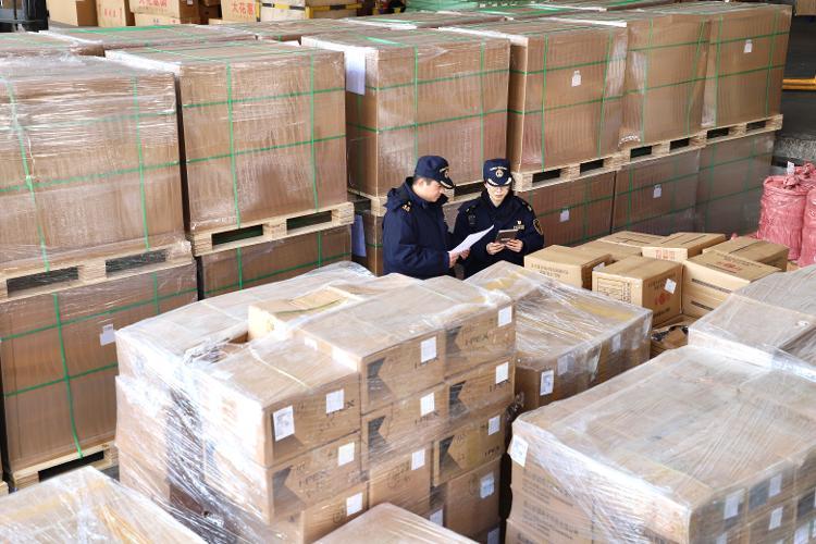 海关关员在昆明机场口岸对进口商品开展监管查验。(昆明海关供图)