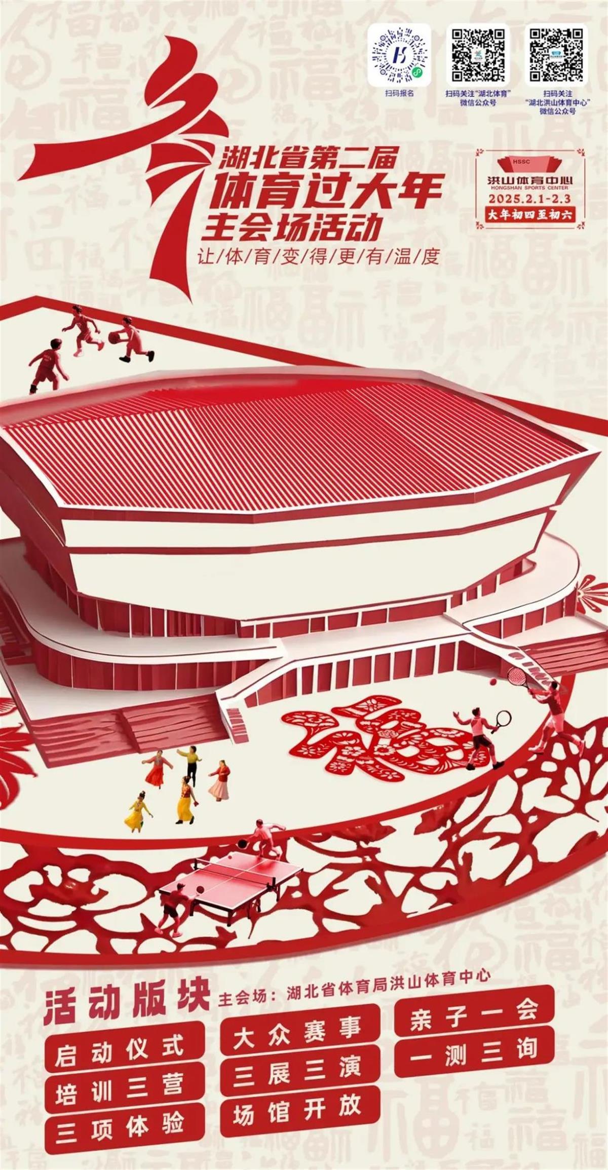 这份来自湖北体育的新春健康大礼包,诚意满满、内容精彩。在灵蛇起舞的新春,一起以运动的昂扬之姿迎接新的一年吧。正月初四燃情过大年,湖北省第二届“体育过大年”主会场活动广邀大家一起来参与。