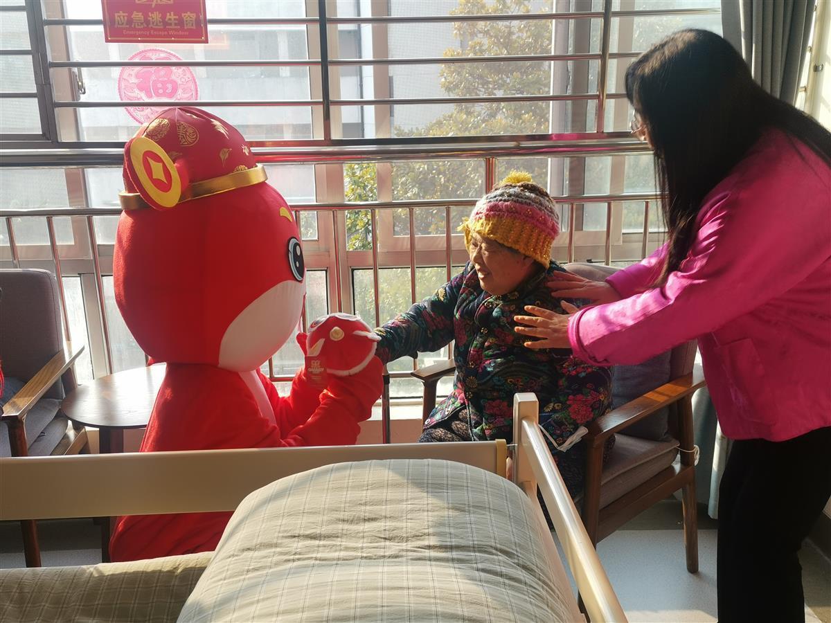 “谢谢大家,你们真有心!昨天晚上和家人吃完年夜饭,我就让他们把我送回来了。现在我更习惯待在这里,踏实又舒服,就像家一样。”接过吉祥物的陈贻秀老人,喜不自胜地说着。