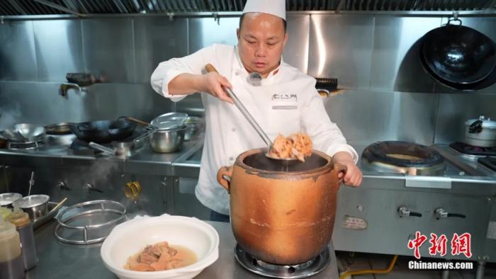 新鲜出炉的湖北铫子藕汤。中新社记者 邹浩 摄