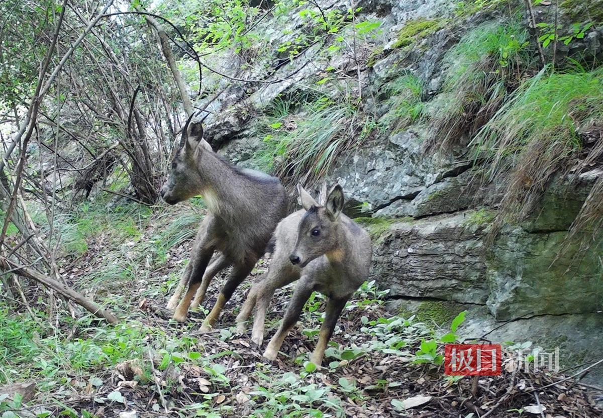 春节前夕,湖北堵河源国家级自然保护区屏峰管理站工作人员在整理红外相机视频资料时,惊喜地发现了一只中华斑羚妈妈带着幼崽在林区闲逛的温馨画面。