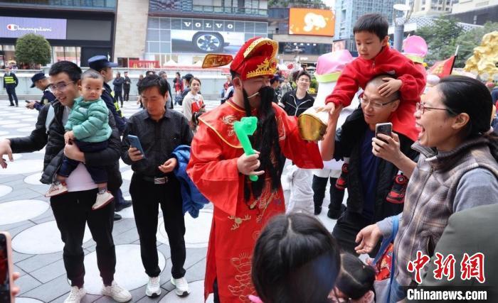 “财神”吸引市民。彭程摄