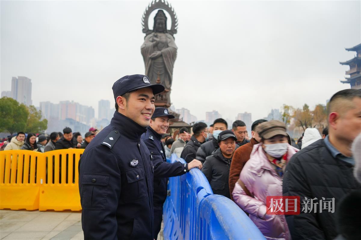 在现场执勤的汉阳区公安分局二桥街派出所所长陈博浩介绍,早晨7时30分,罗汉堂前已排起了长队,他和民警引导游客有序前行,一旦发现有老人、儿童在排队时出现体力不支等情况,就第一时间上前救助。