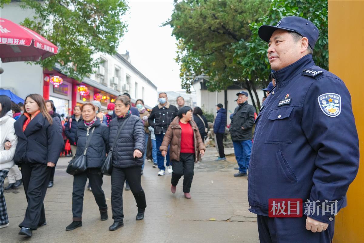“老人家,我送您进去。”59岁的汉阳区公安分局江北派出所民警王闻先搀扶着95岁高龄的吴奶奶,在摩肩接踵的人潮中辟出一条“爱心通道”。从警25年的他,在退休前最后一次归元寺春节安保执勤中,仍保持着矫健的步伐。