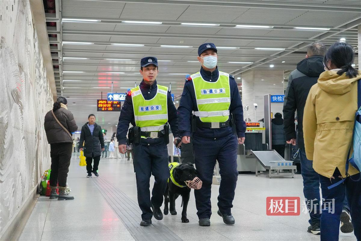 在距离归元寺最近的钟家村地铁站,智能安检门与民警的“火眼金睛”双重过滤风险,轨道公安的“快反小组”带着警犬在站台内开展巡控,让市民群众感受到安全就在身边,平安就在眼前。