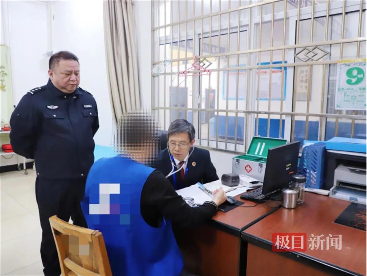 刘珍明(右一)在巡回检察中查看患病在押人员病历资料、询问就诊情况