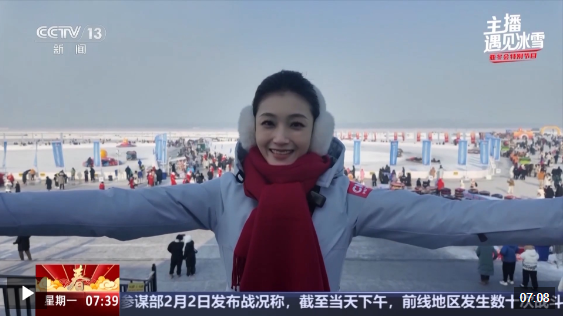 主播 迟茜:大家知道为什么叫“滨滨”和“妮妮”吗?因为这是哈尔滨的滨,这是您好的您,谐音“妮妮”,表达了哈尔滨欢迎您,亚冬会欢迎您。