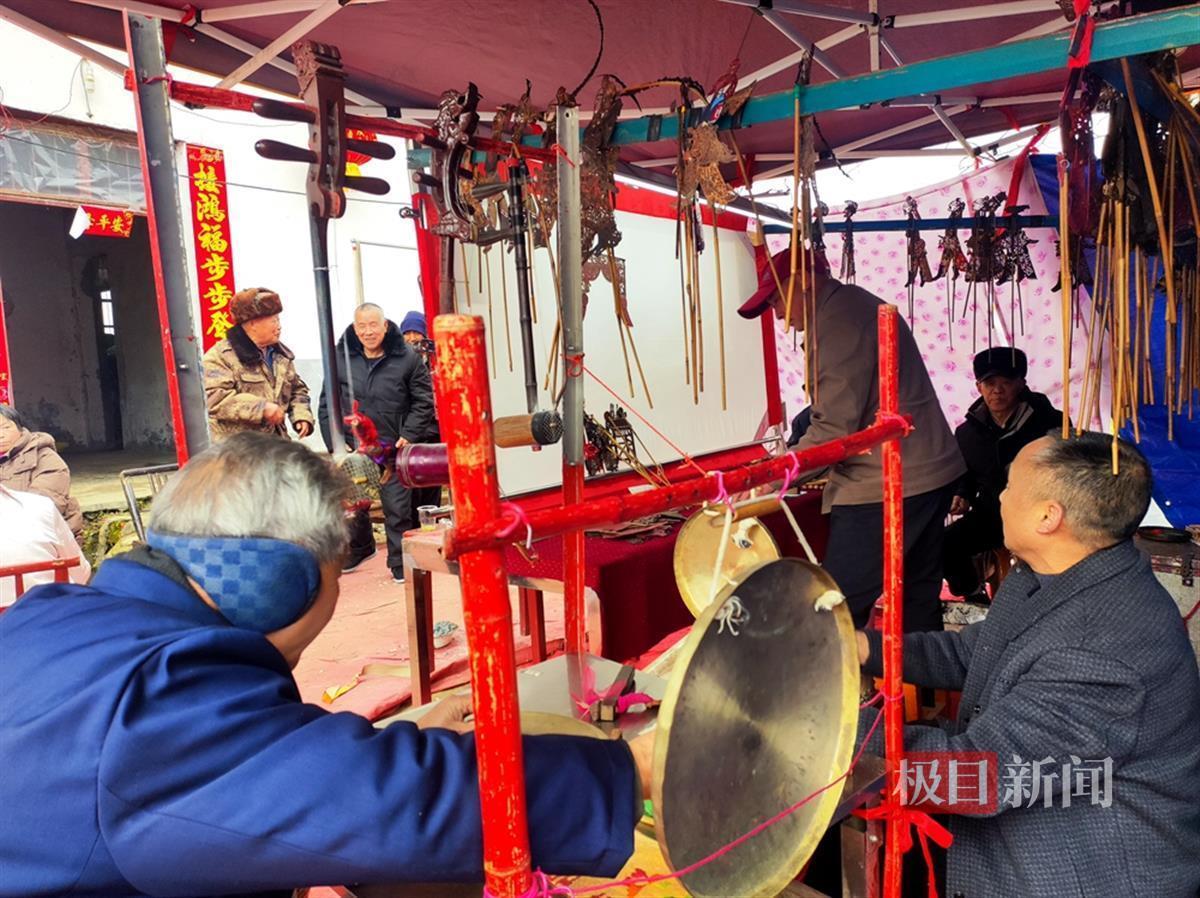 当日,竹山县堵河皮影高腔演出队在竹坪乡陈家河村演唱皮影戏《三代四状元》《五行会》,为群众贺新春、拜新年。