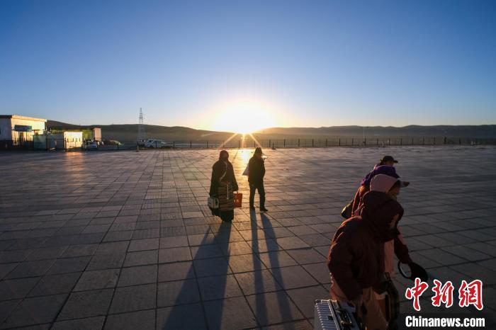 2月3日日出时分,西藏那曲安多民众到达安多火车站,准备进站乘车。中新社记者 江飞波 摄