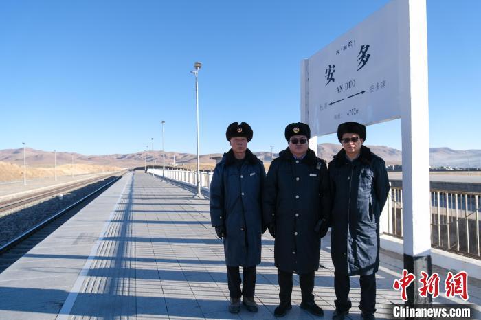 2月3日,青藏铁路西藏那曲安多站的三位职工,从左至右分别为权京波、安海平和彭敏。中新社记者 江飞波 摄