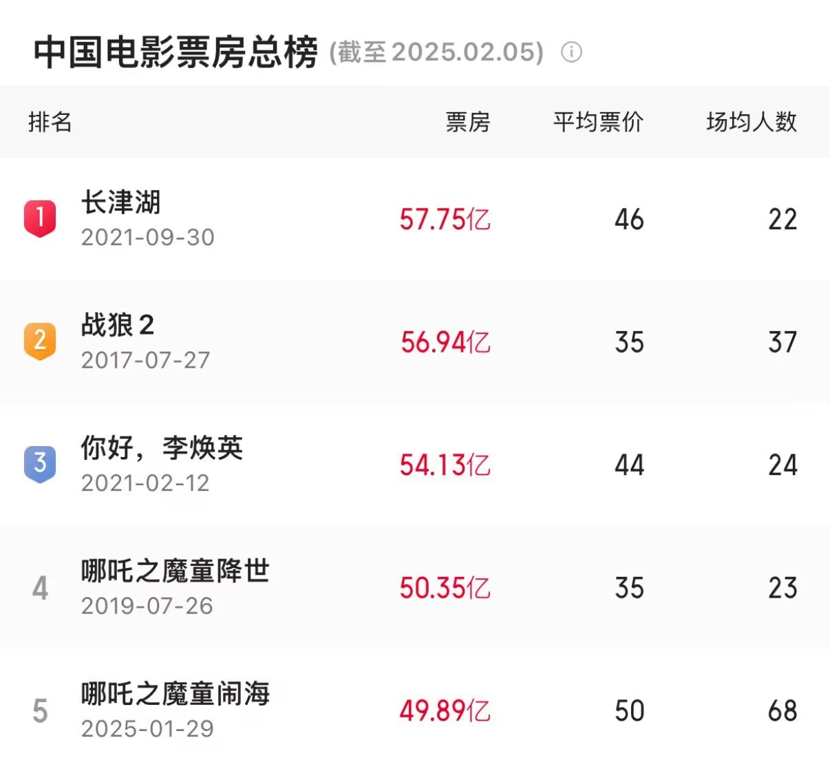 目前,《哪吒2》以近50亿的票房成绩,位居中国影史票房榜第5,第4名是它的“哥哥”《哪吒1》。