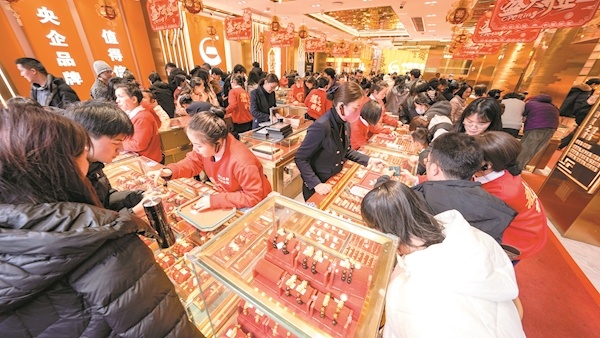在业内专家看来,“过年添金”象征着财富和吉祥,即使价格创新高,也难挡消费者的购买热情。春节期间生意特别红火,不仅是本地市民,还有大量外地游客逛店购买金饰。
