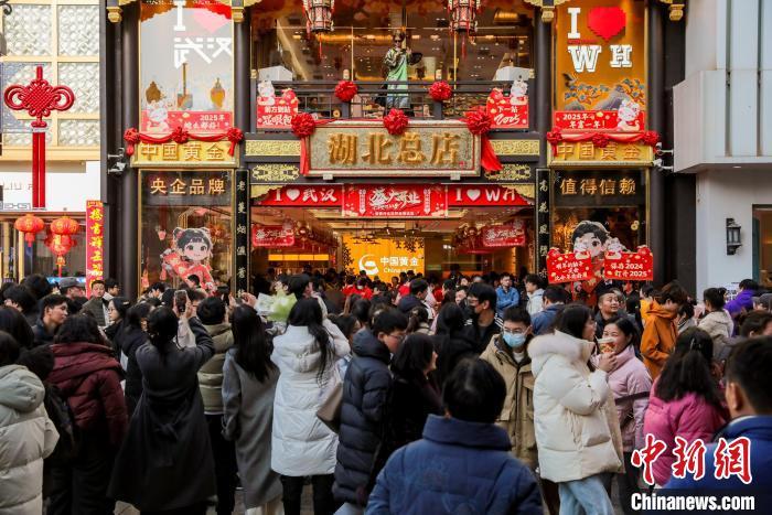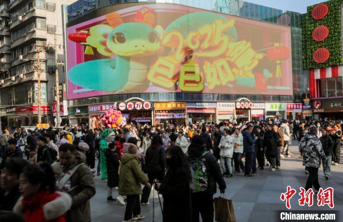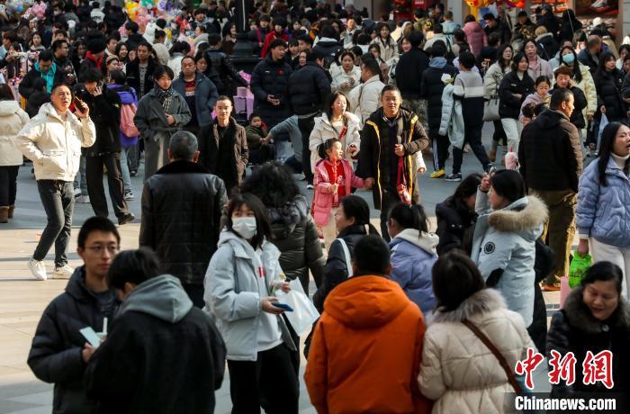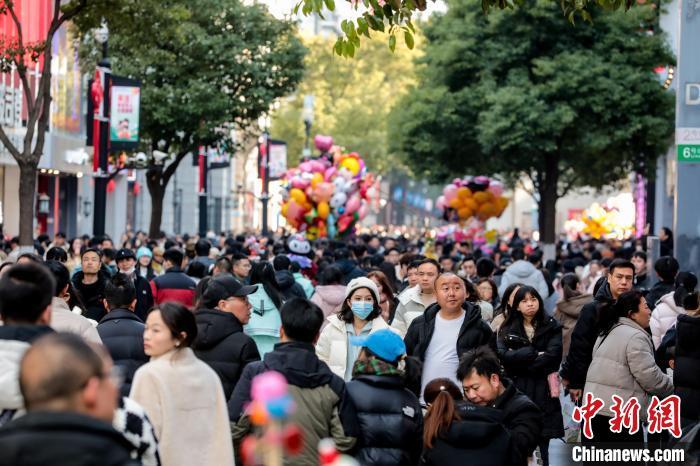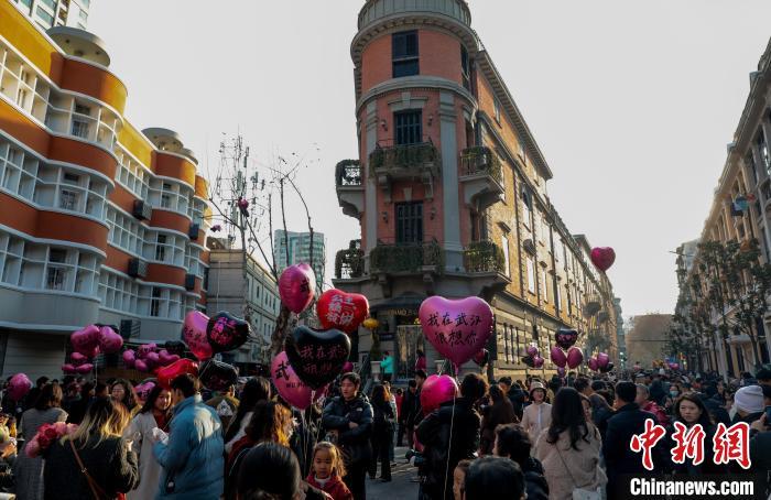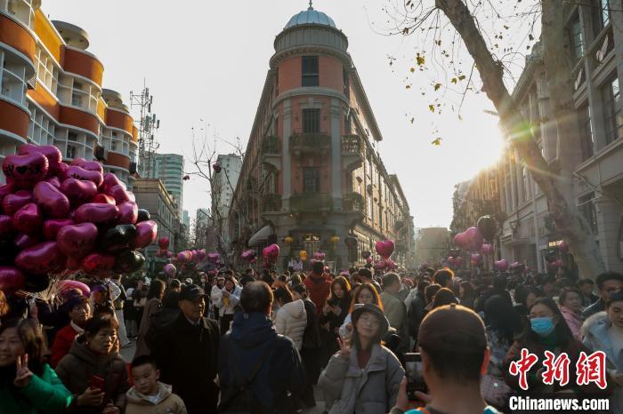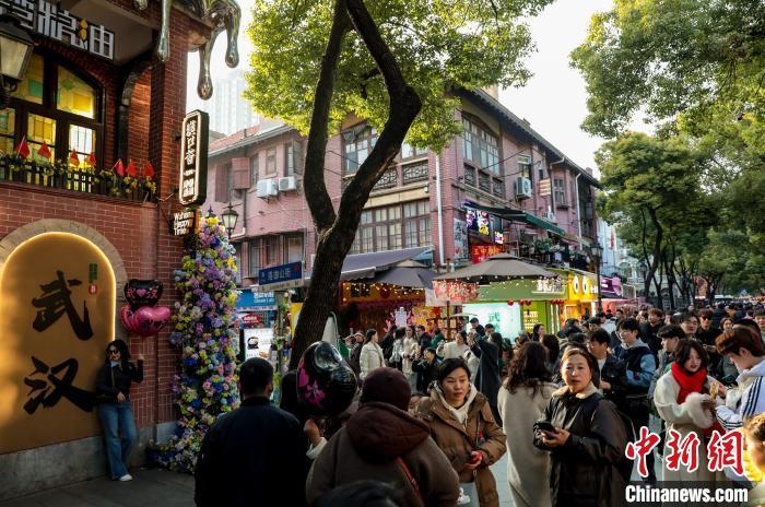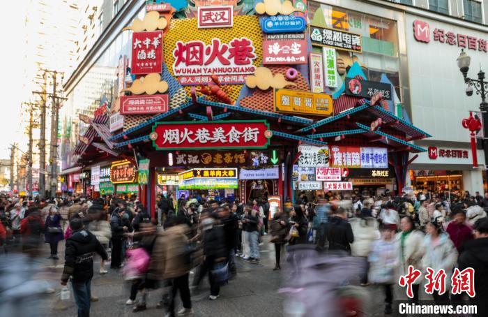 2月4日,江汉路步行街上人潮涌动。当日,春节假期迎来最后一日,武汉江汉路步行街和汉口历史风貌区游人如织,民众游兴不减。中新社记者 张畅 摄