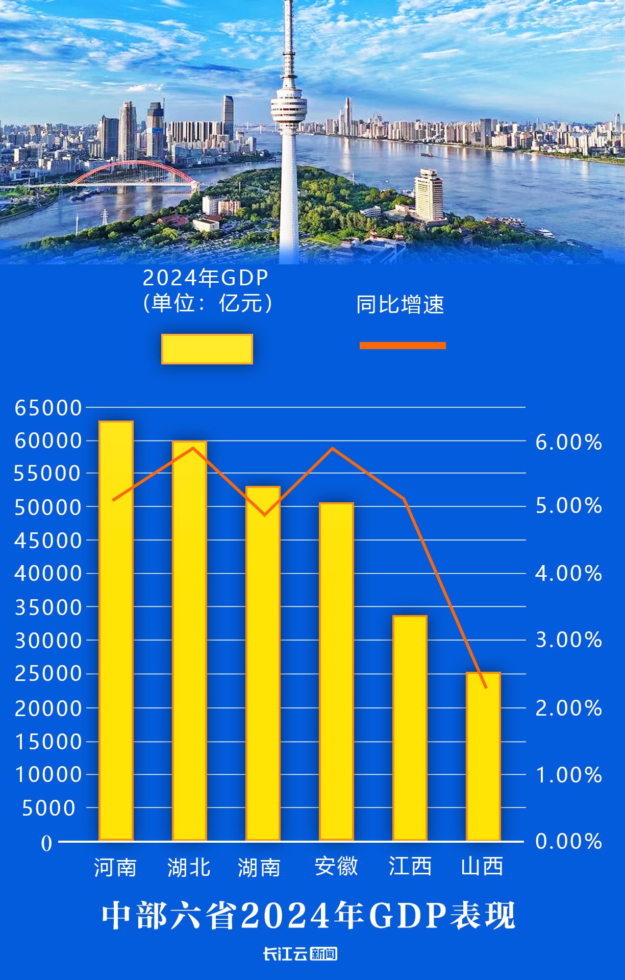 2024年湖北GDP增速为5.8%,增速全国第三。也就是说,湖北不仅发展能级在中部较强,还有更高的发展质效。前者是“快于”,后者着眼于“好于”“强于”。