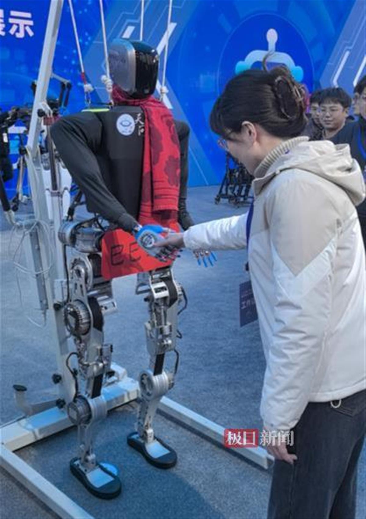 “天问二号比身高1.8米的一号个头小一点,但体重更重一些,它最大的改进是有一双更接近人手的‘灵巧手’。”李淼介绍,这双手是用高分子复合材料和微结构打印出的,比前一代更“温柔”,平时已经能帮他拿咖啡。