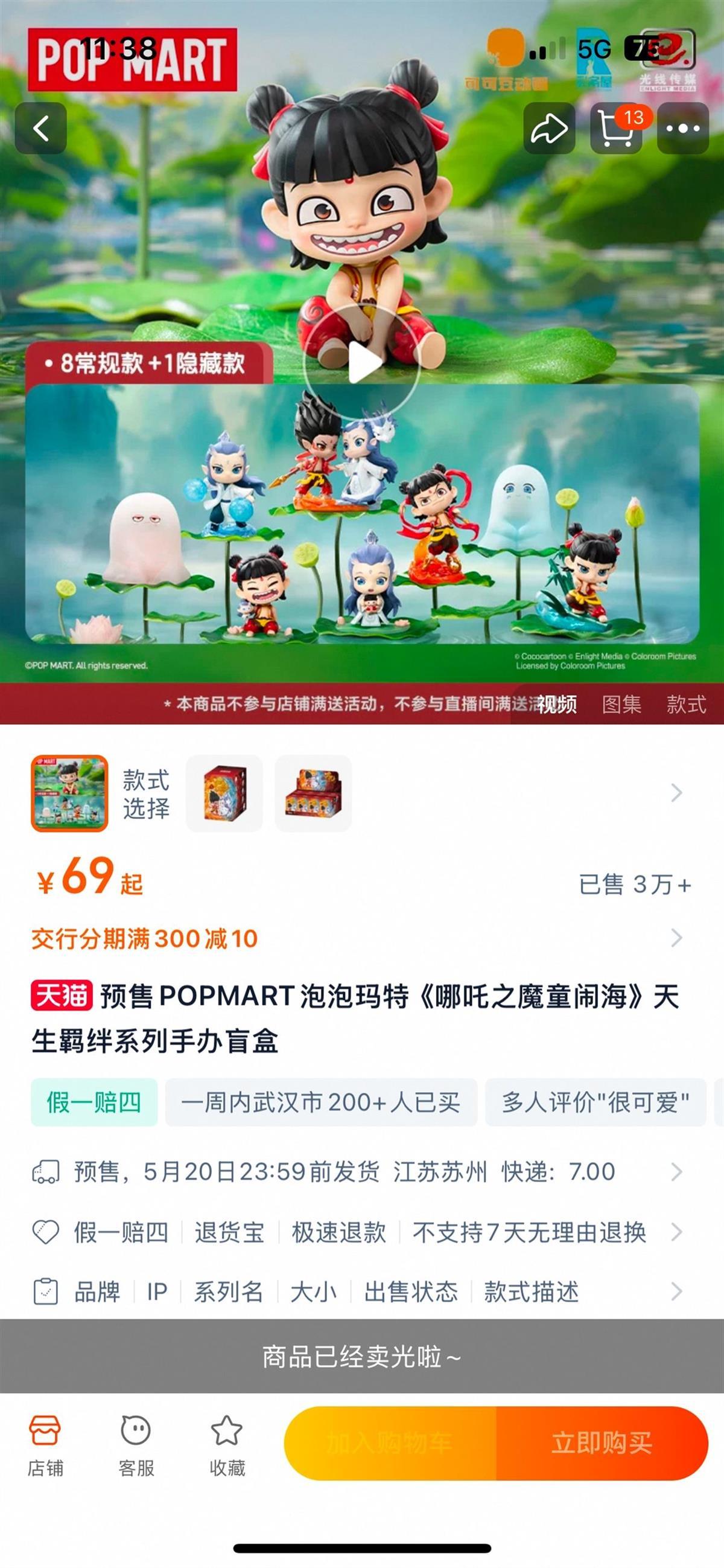 泡泡玛特推出哪吒相关手办(泡泡玛特旗舰店截图)