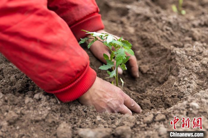 图为当地村民在中坝岛标准化蔬菜大棚里栽种番茄苗。刘纪湄 摄