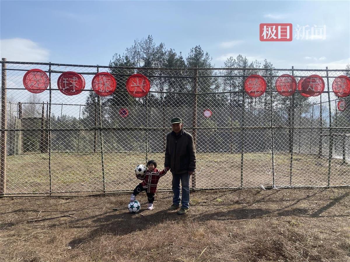 “山里的孩子,平时没啥好玩的地方,房前屋后就是游乐场。”据孩子的父亲秦溶谦介绍,自己酷爱踢足球、看球赛,孩子从小也喜欢踢球,家里的圆形玩具,都被其当作球来踢,孩子的爷爷便有了搭建足球场的想法。