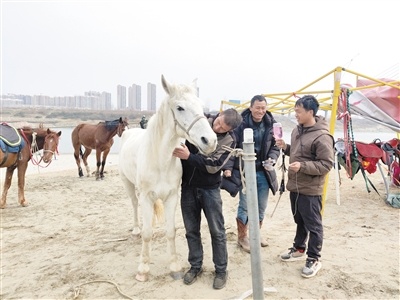 刚开春的河水冷得刺骨,刘杭州说,江水体感大概只有6℃,人很容易冻僵,哪怕有多年的冬泳经验,他在水中游得也很吃力。这时,落水男子已经漂出了几十米远,接近航道的深水区。在游向落水者的过程中,只见一道骑白马的身影,从他身边飞掠而去,直奔落水者。