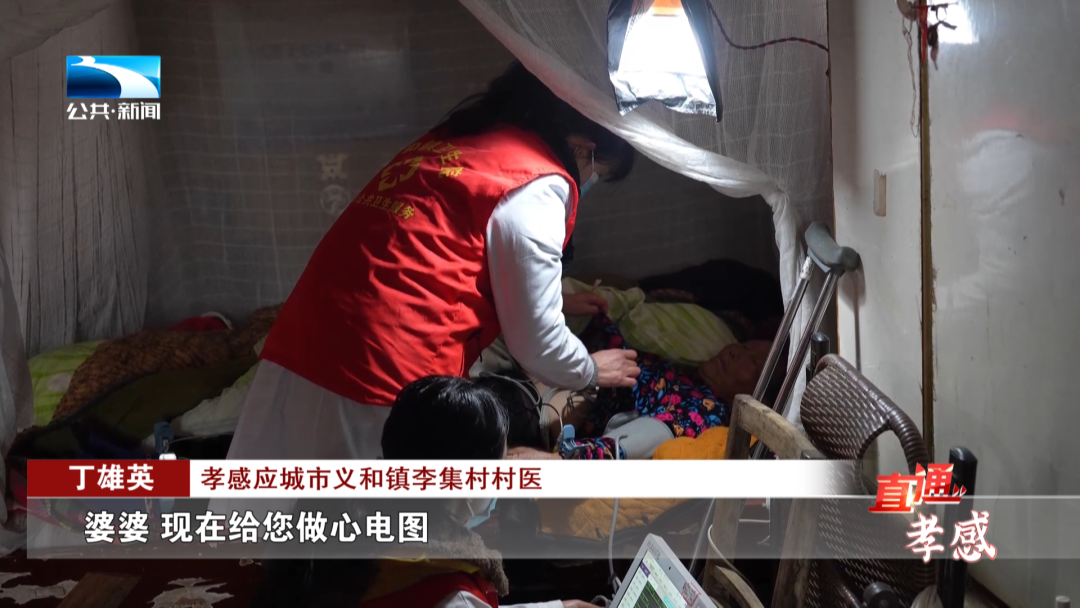 孝感应城市义和镇李集村村医丁雄英说:“婆婆,现在给您做心电图,如果有什么不舒服就跟我讲。”