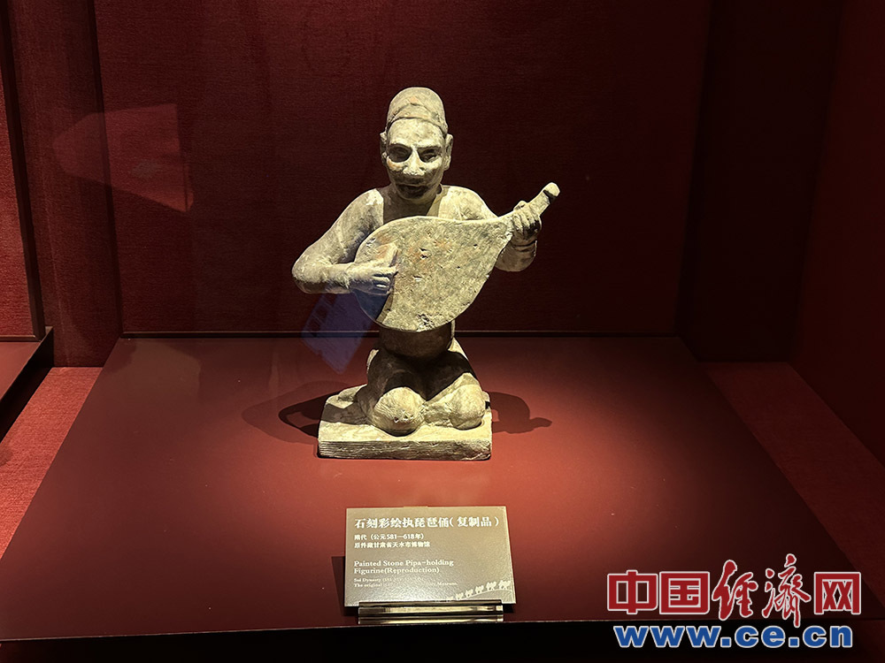 石刻彩绘执琵琶俑。中国经济网记者 杨淼摄