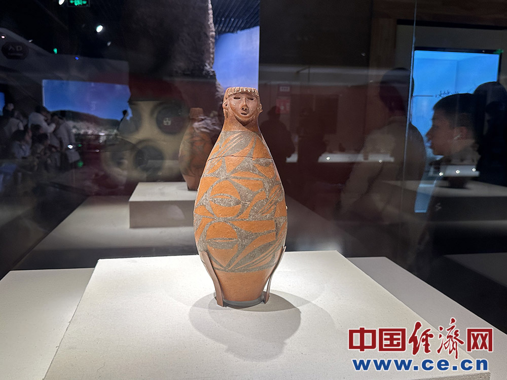 人头形器口彩陶瓶。中国经济网记者 杨淼摄