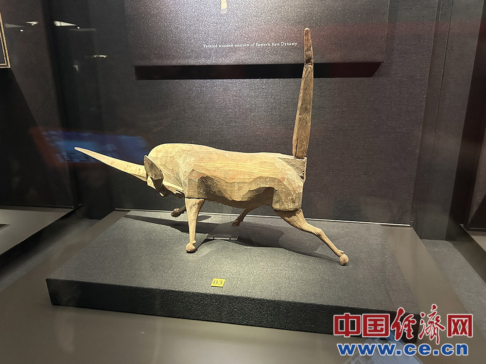 东汉彩绘木独角兽。中国经济网记者 杨淼摄