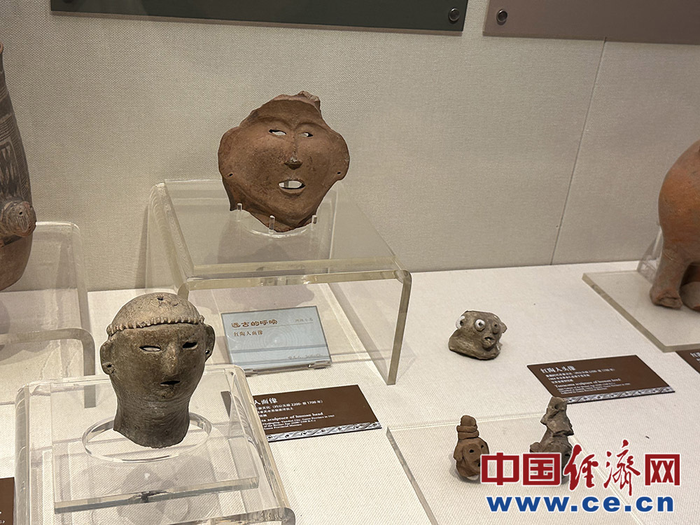 红陶人面像。中国经济网记者 杨淼摄