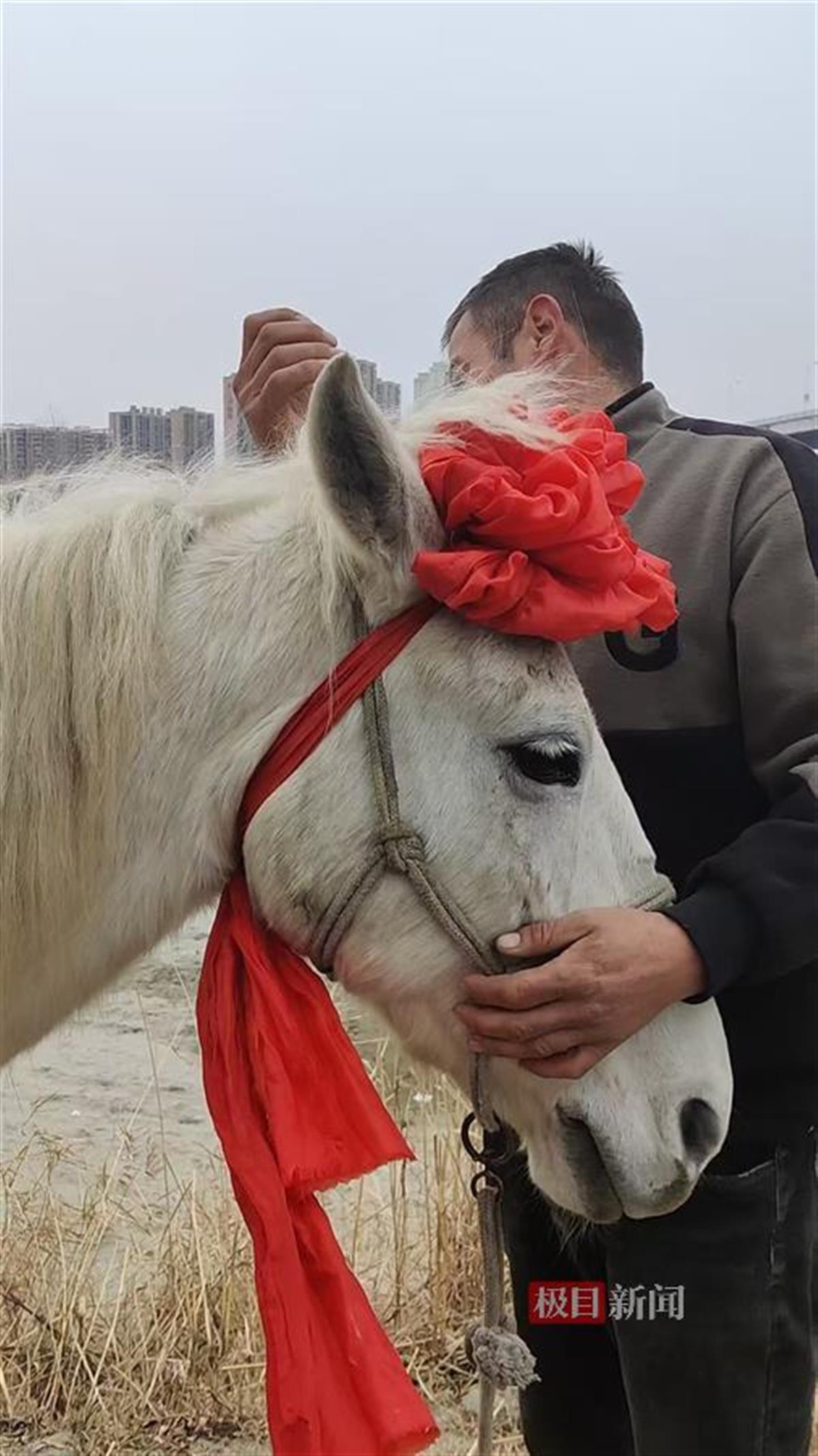 当日,极目新闻记者在表彰现场看到,“白龙马”穿上了保暖的“衣服”,头戴红绸,与骑马救人三人组一同接受见义勇为表彰。